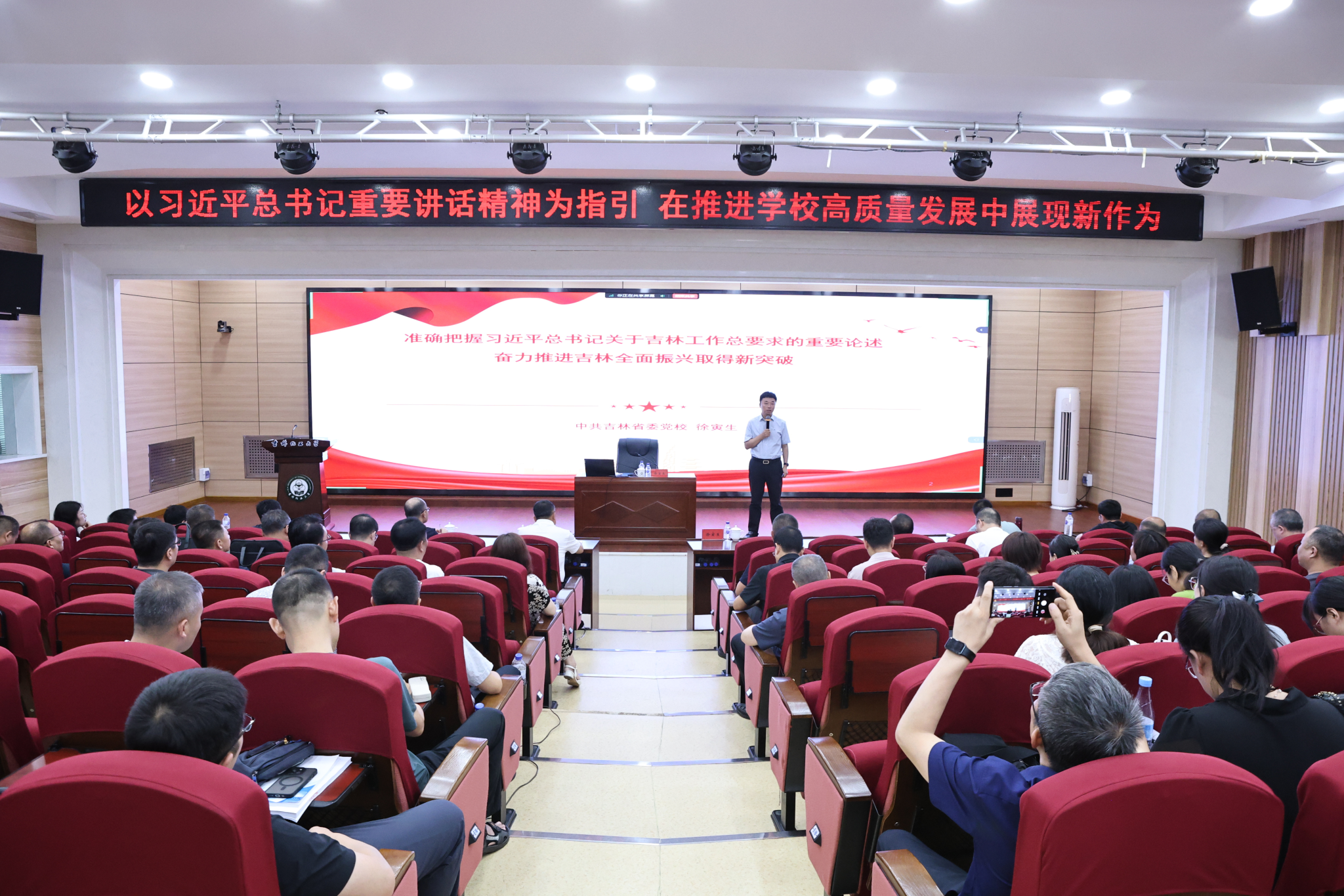 宋春辉强调,学习贯彻习近平总书记在吉林重要讲话精神、推动学校高质量发展,是当前和今后一个时期的重要政治任务。全体党员干部要深学理论、抢抓机遇、锤炼品格,把转作风树新风的成效,转化为主动作为、奋发有为、担当善为的实际行动,为推动学校事业更高质量发展做出新的更大贡献!